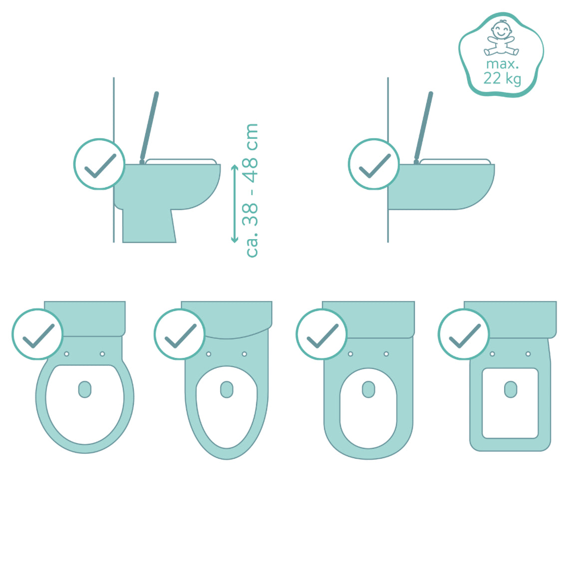 Vesi-trappan hjálpur tær og barninum at nýta vesi og at venja seg av við blæuna. Trygt og stytt, lætt at reinsa, kann nýtast til flest vesi, bleyt setur.
