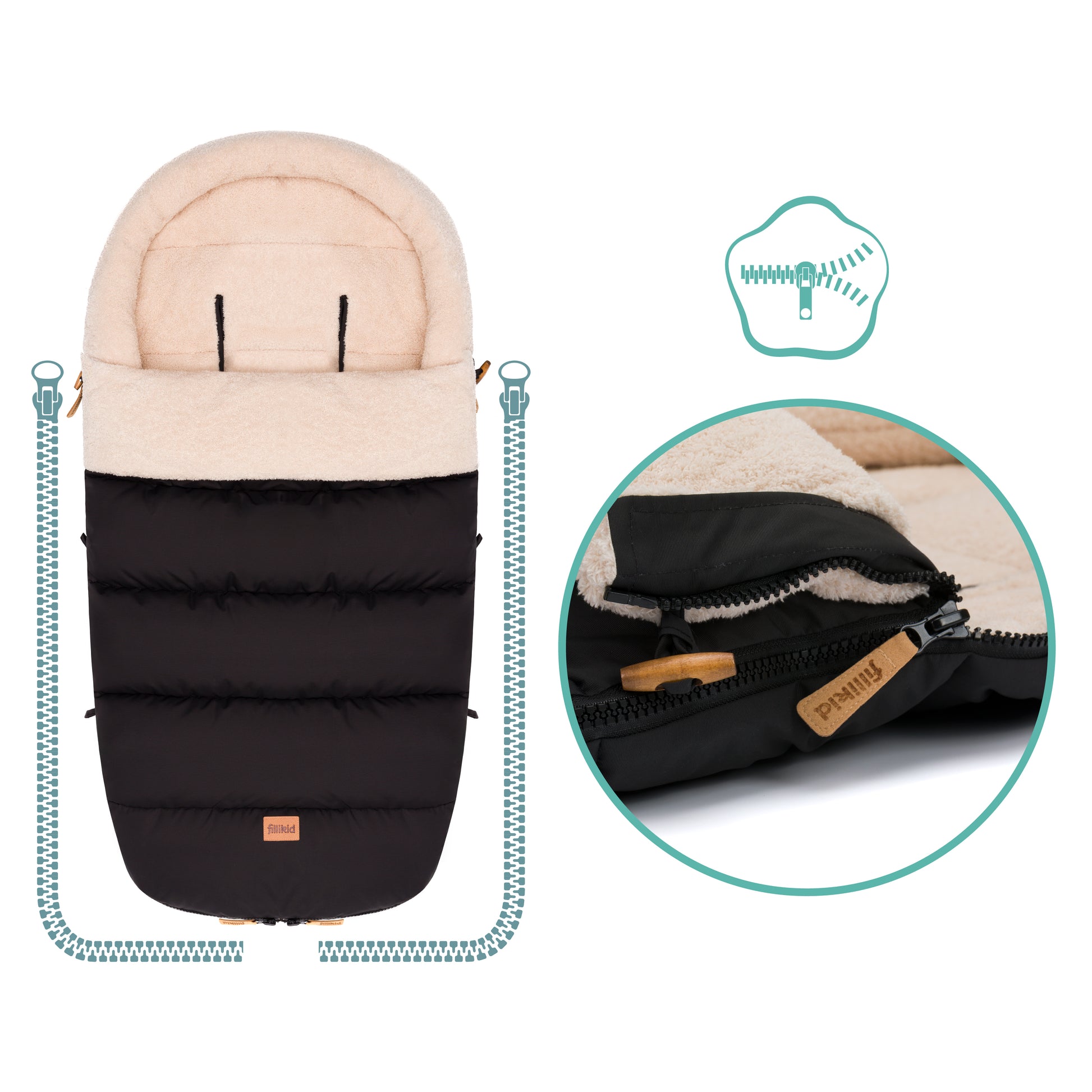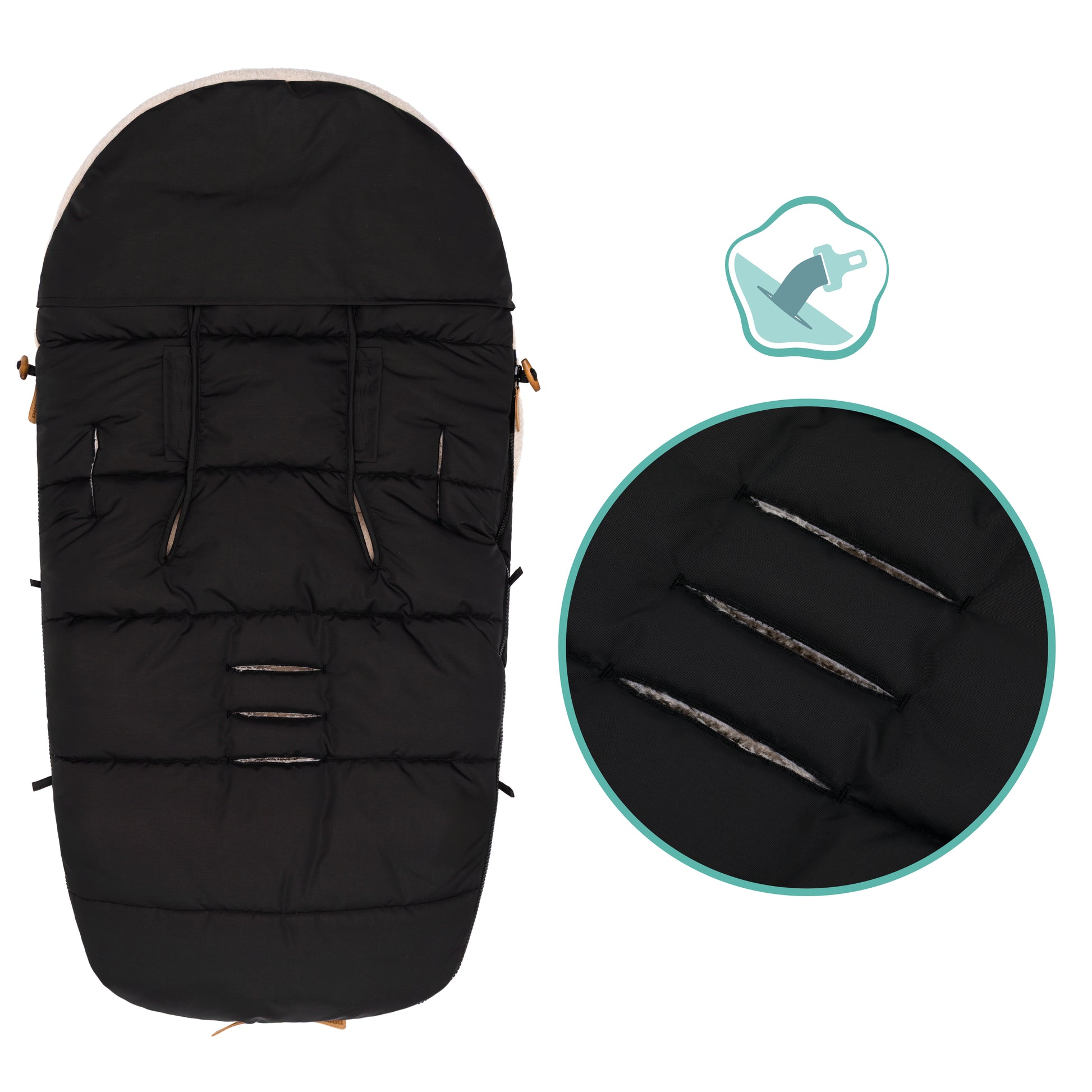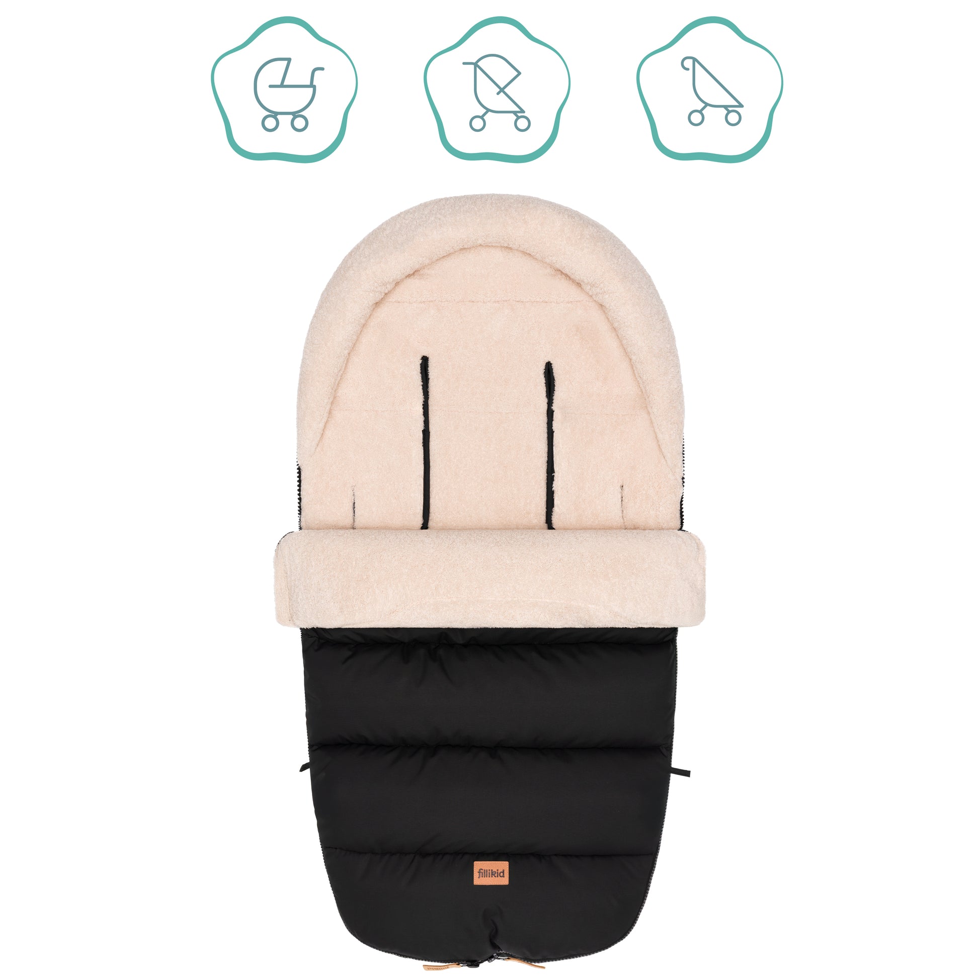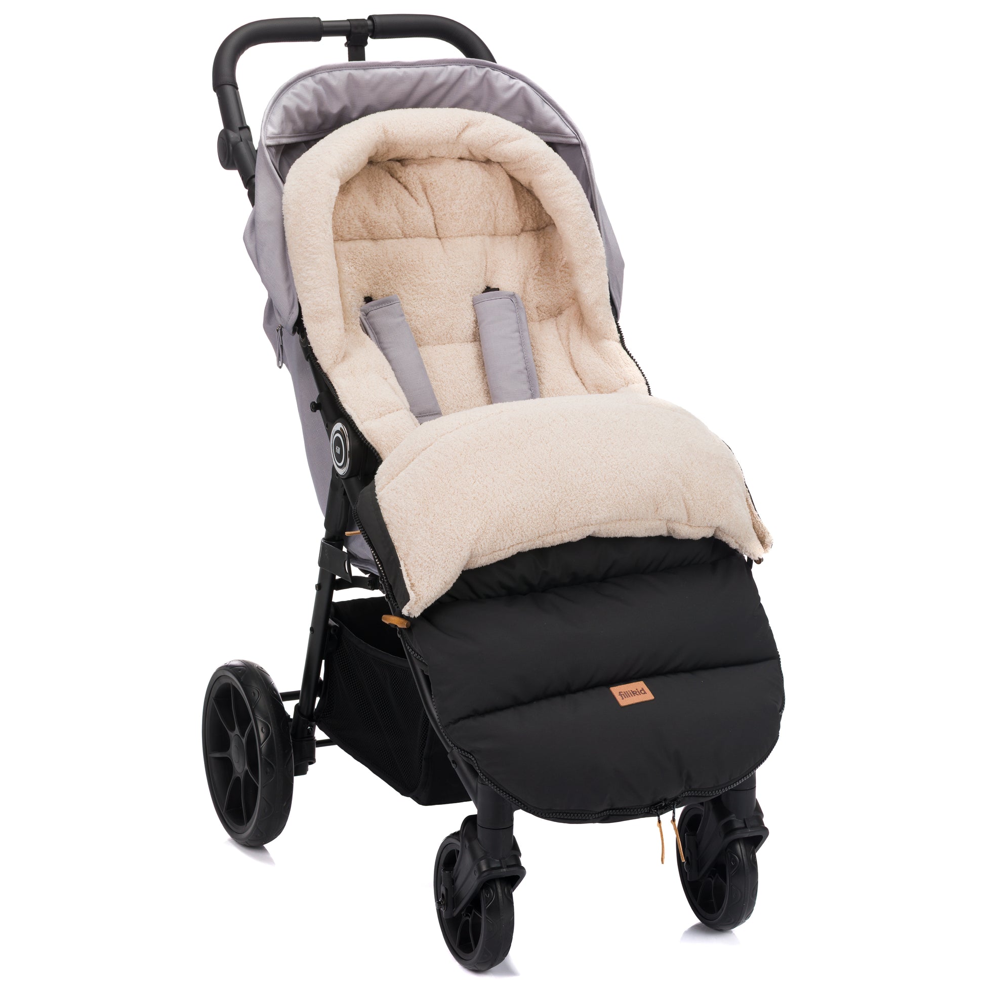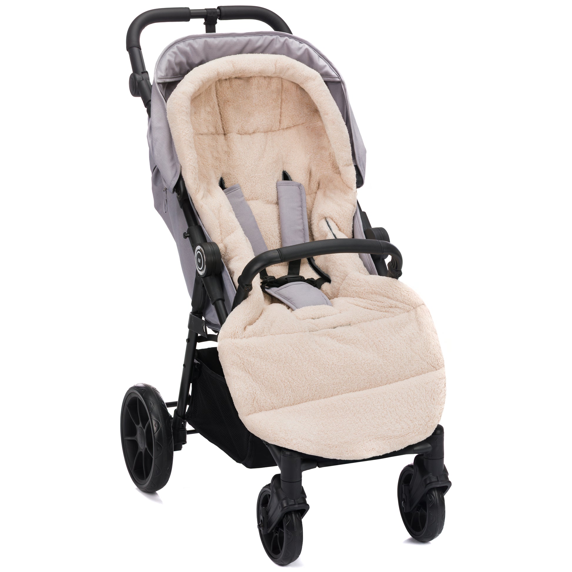 Lekkur og heitur vognposi við teddy fleece innan. Er vatnavvísandi og hevur hitastillandi tilfar, sum andar. Øll framsíðan kann takast av. Passar til barnavognar og klappvognar við 5-punktstrygdarbelti.