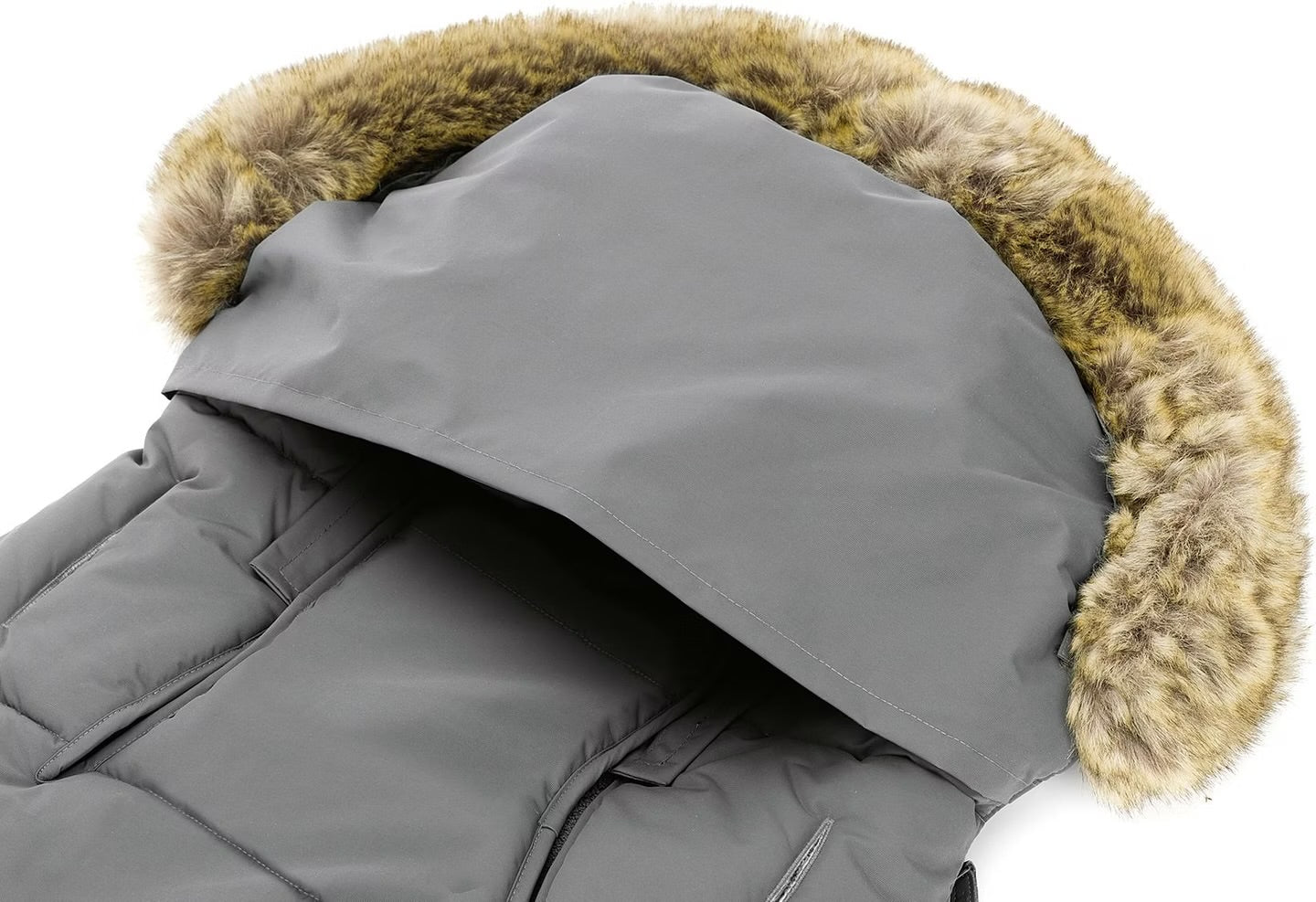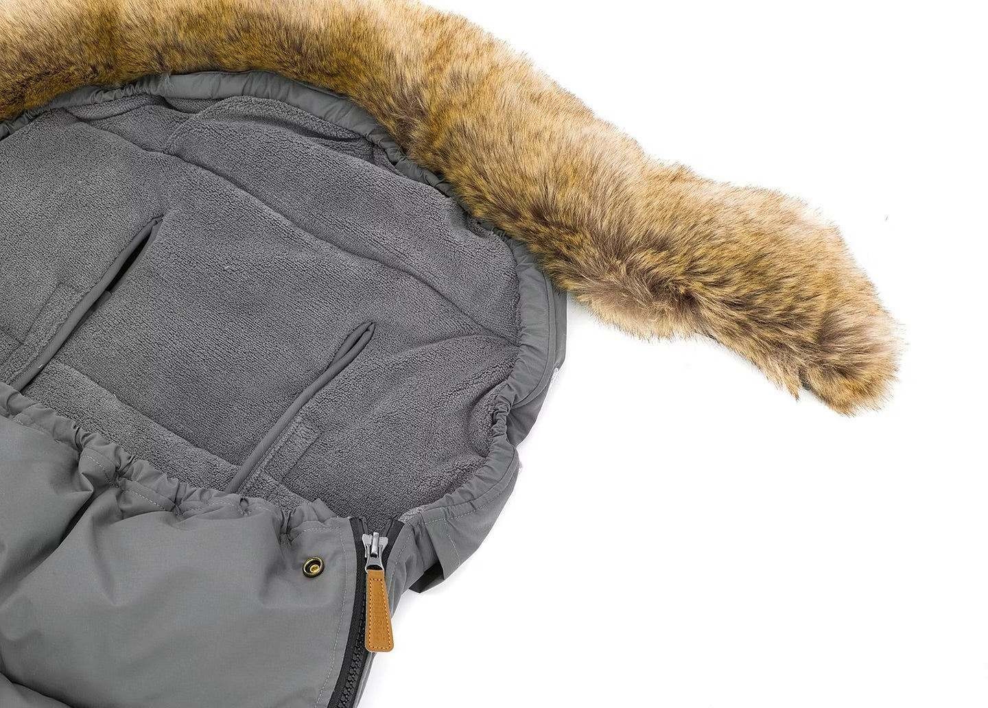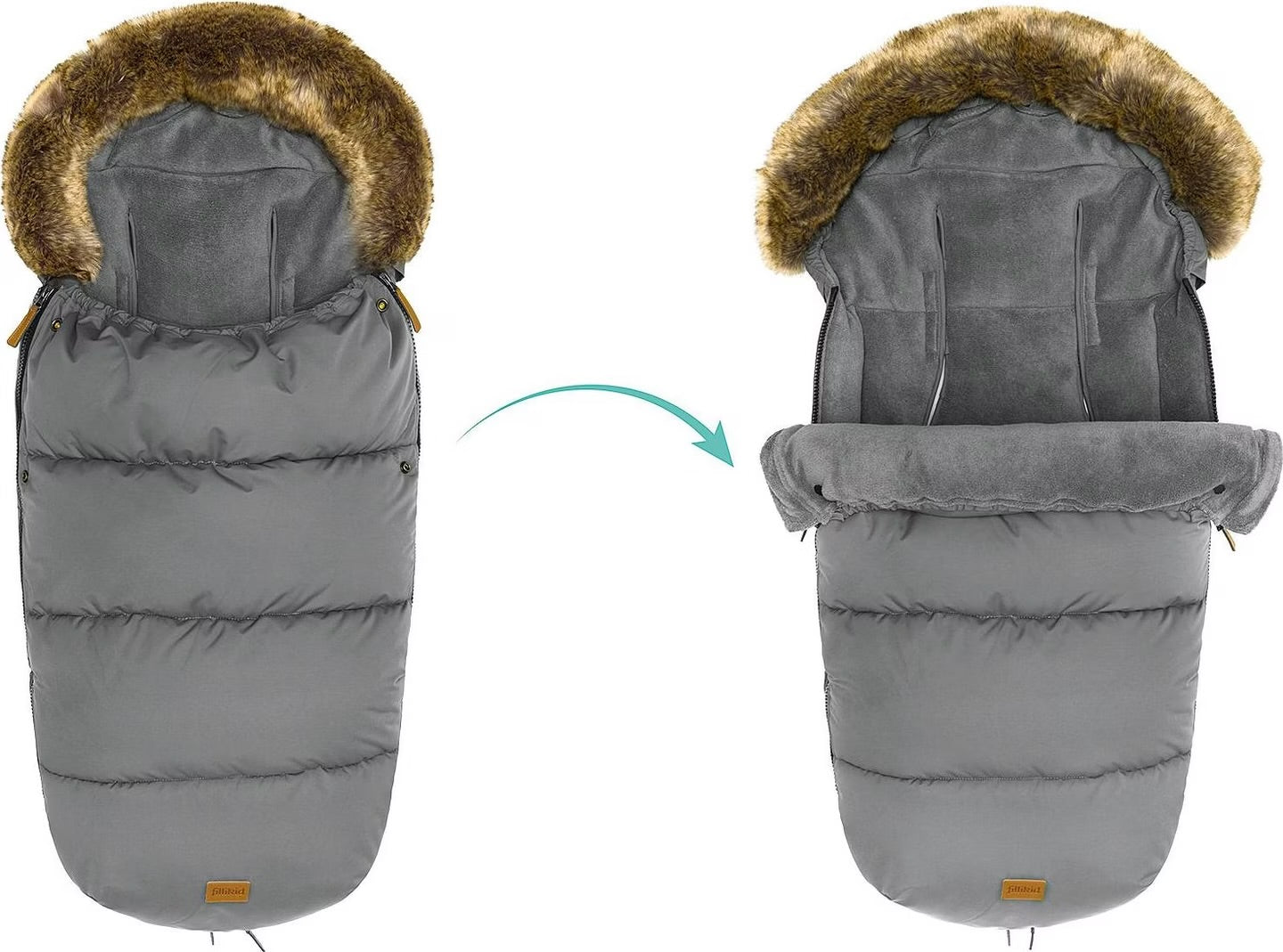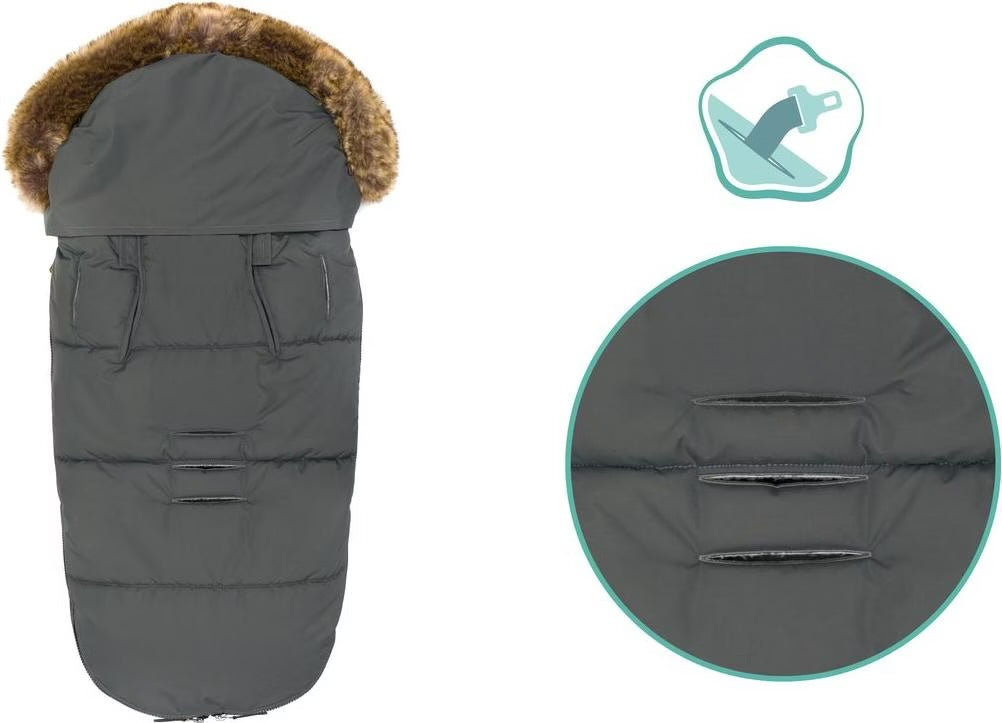 Lekkur og heitur vognposi við koralfleece innan. Pelskragi, sum kann takast av. Er vatnavvísandi og hevur hitastillandi tilfar, sum andar. Øll framsíðan kann takast av. Passar til barnavognar og klappvognar við 5-punktstrygdarbelti.