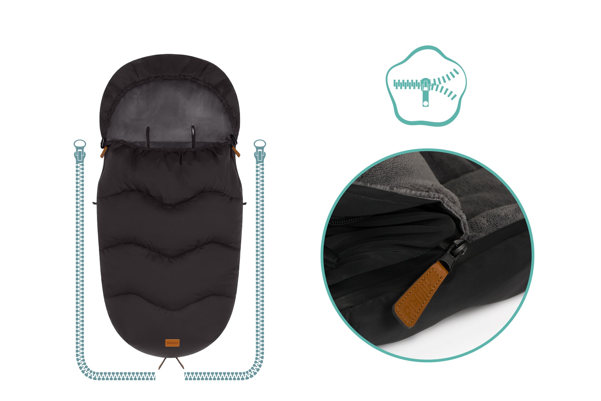 Upplivað fulla komfort við okkara Ogre fótposa frá Fillikid. Við fyldigari fyllu og nýmótans sniðið fært tú eisini fulla endurskinseffekt, sum verjir tykkum í myrkri. Fótposin er bæði vindtættir og vatnavvísandi. Støddin er 53x105cm og er fóðraður við mjúkum mikro-velour, kann nýtast til allar vognar.