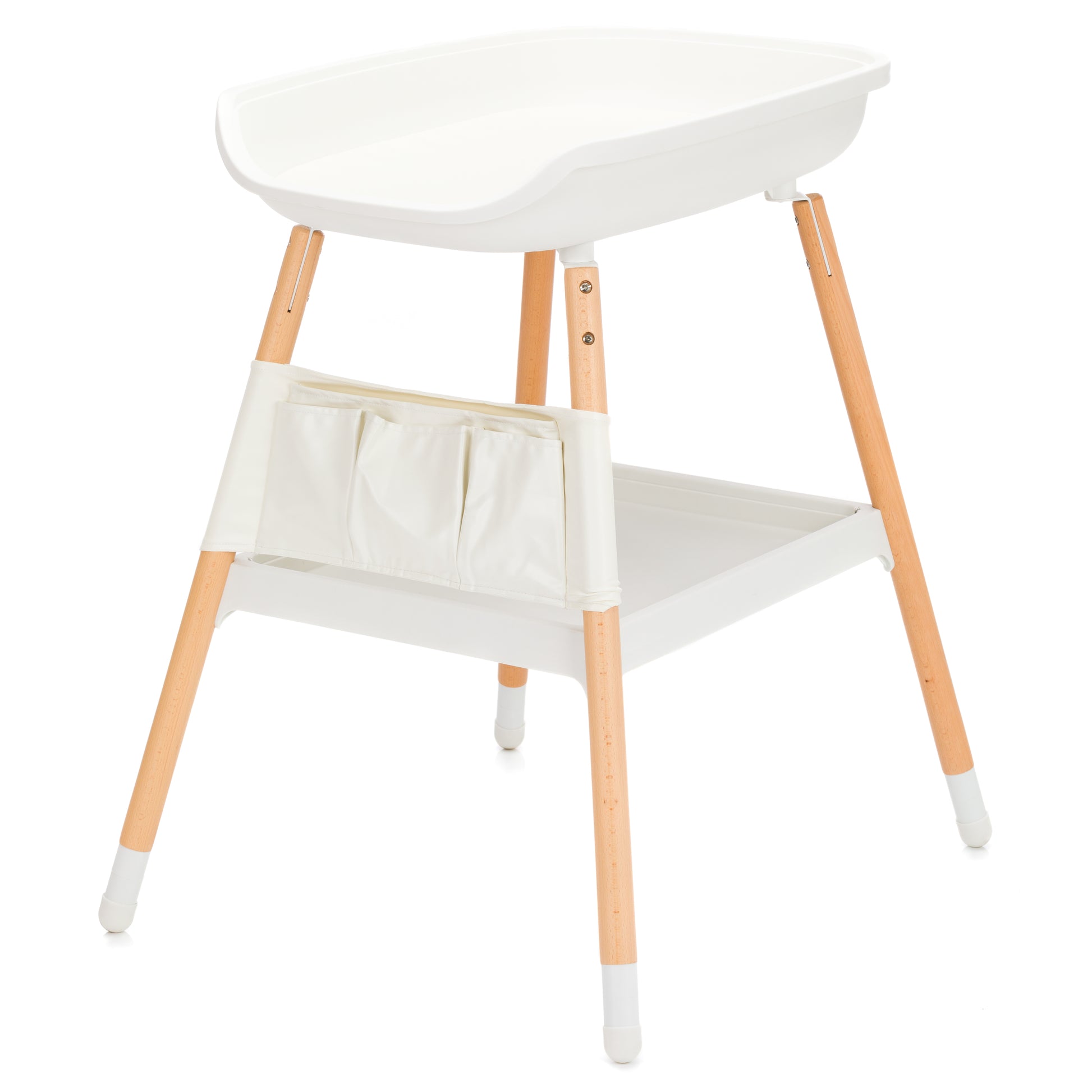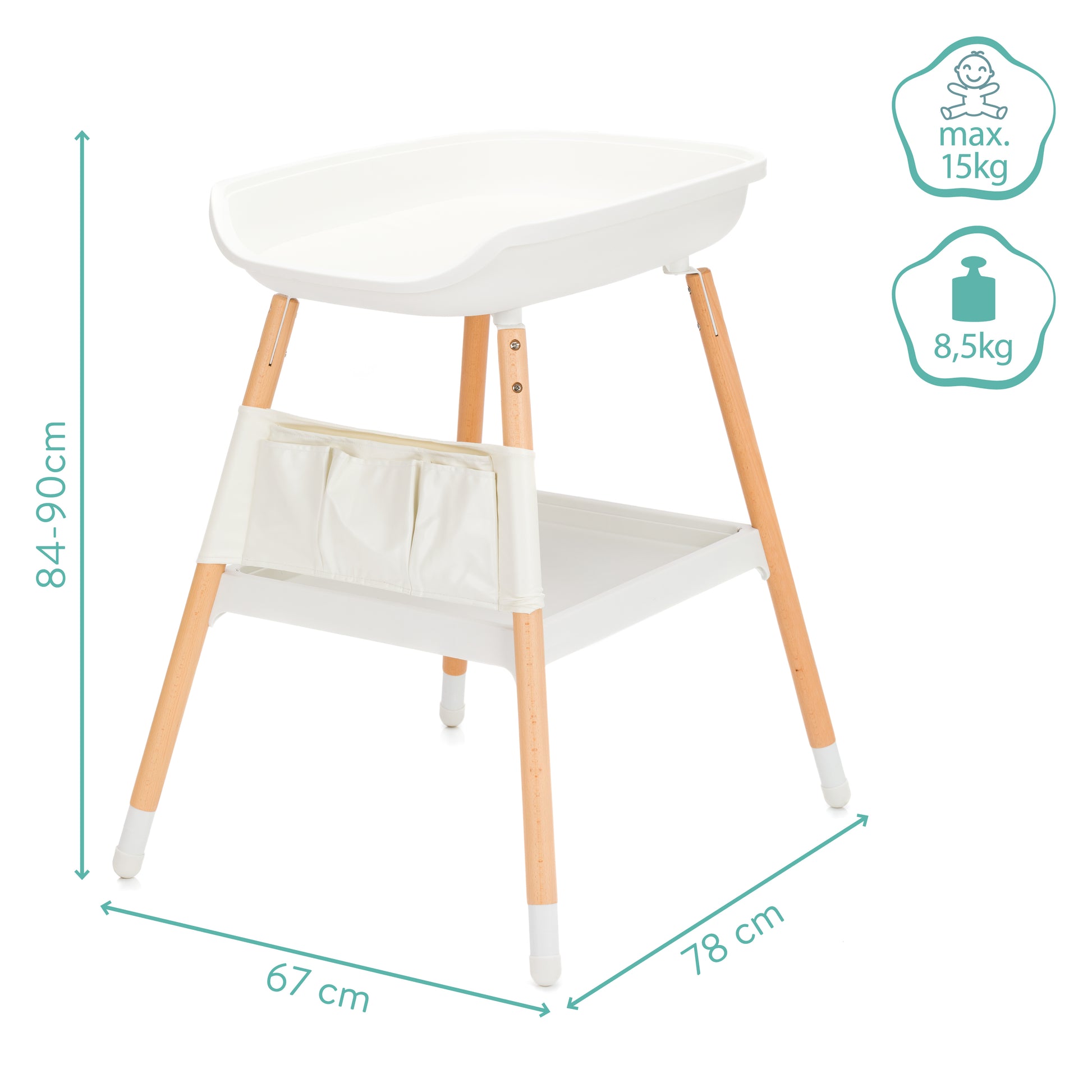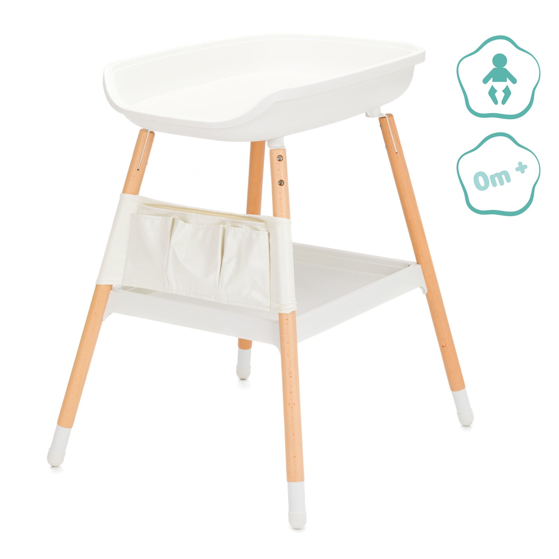 Stílfult, praktiskt skiftiborð úr góðsku tilfarið. Við robustum træðbeinum fært tú bæði stabilitet og ein móta møbil. Skiftiborið er lætt at turka eftir og pútan kann eisini takast av. Hevur eina góða goymsluhill undir og smáar goymslu lummar.