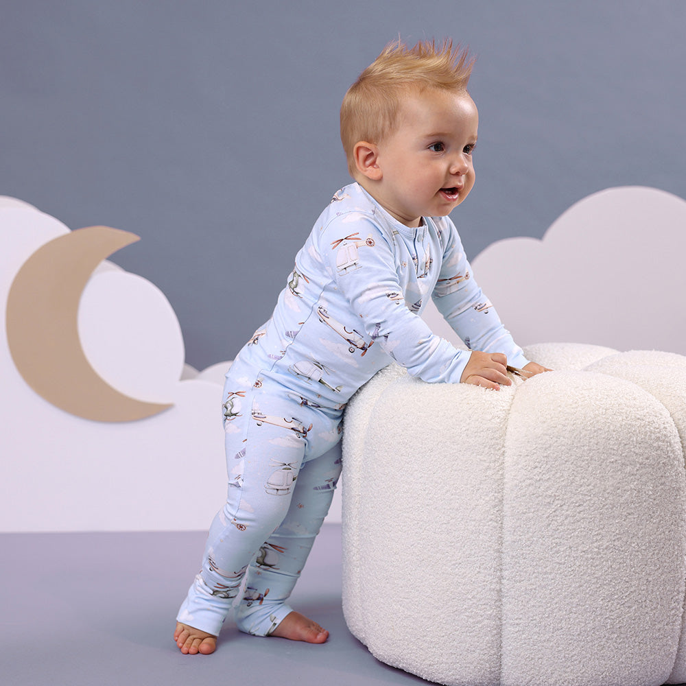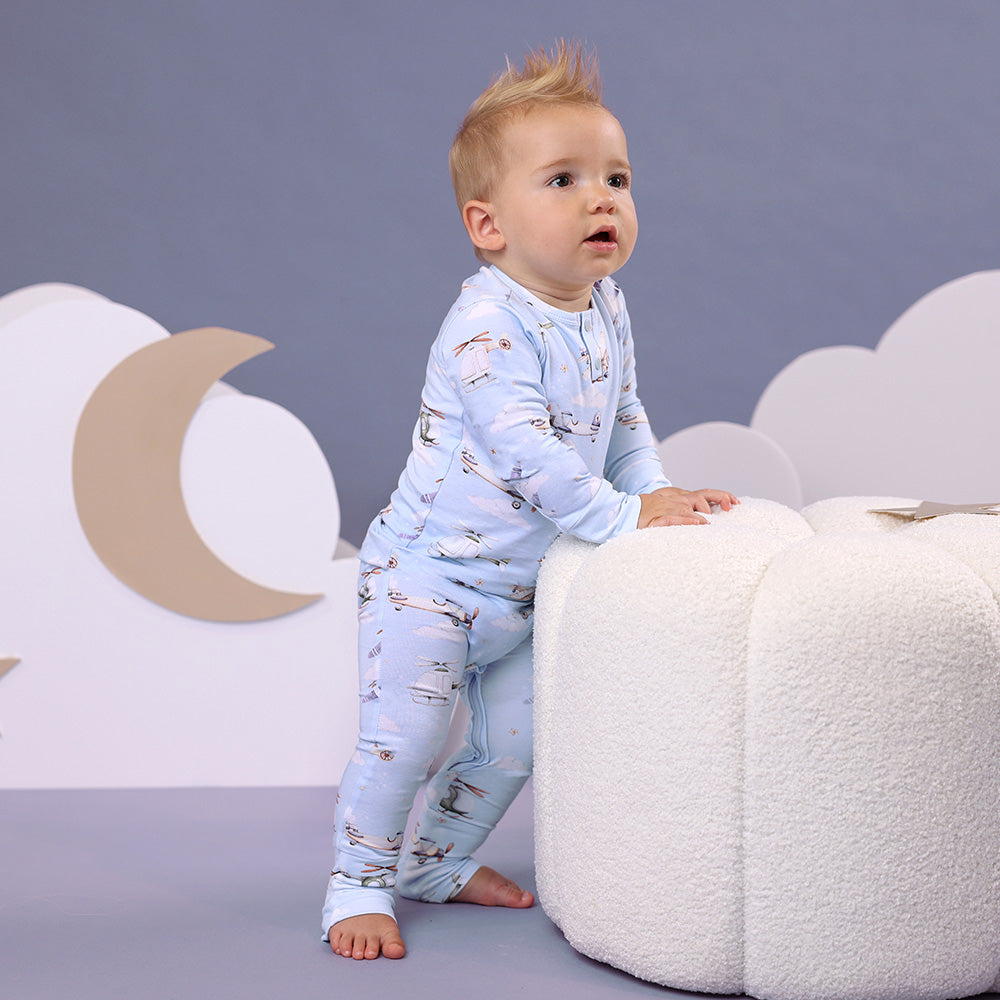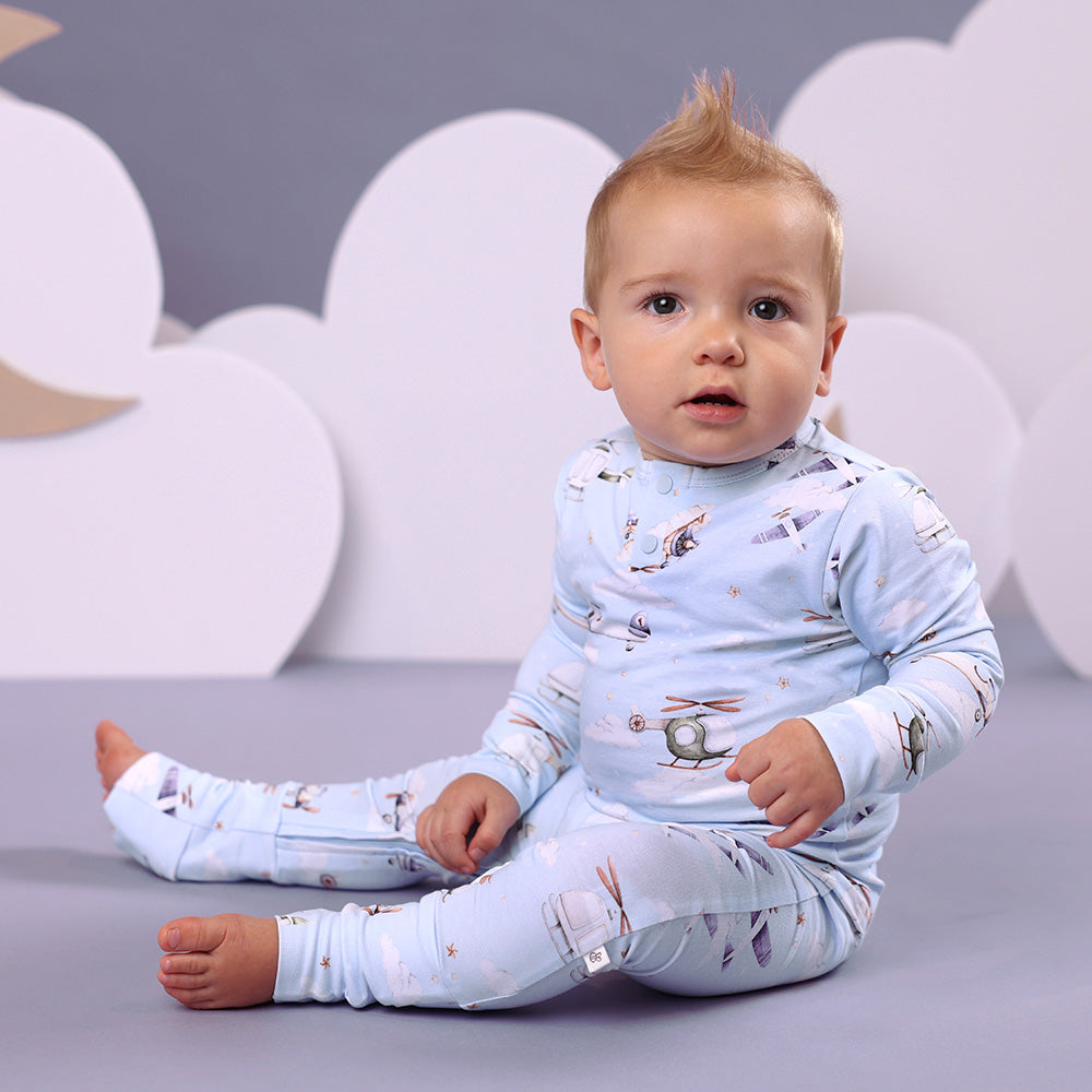 Fitt og bleyt sparkidrakt frá Snuggle Hunny. Við Taking Flight prenti á vistfrøðiligu bummullini er draktin mjúk og lekkur.